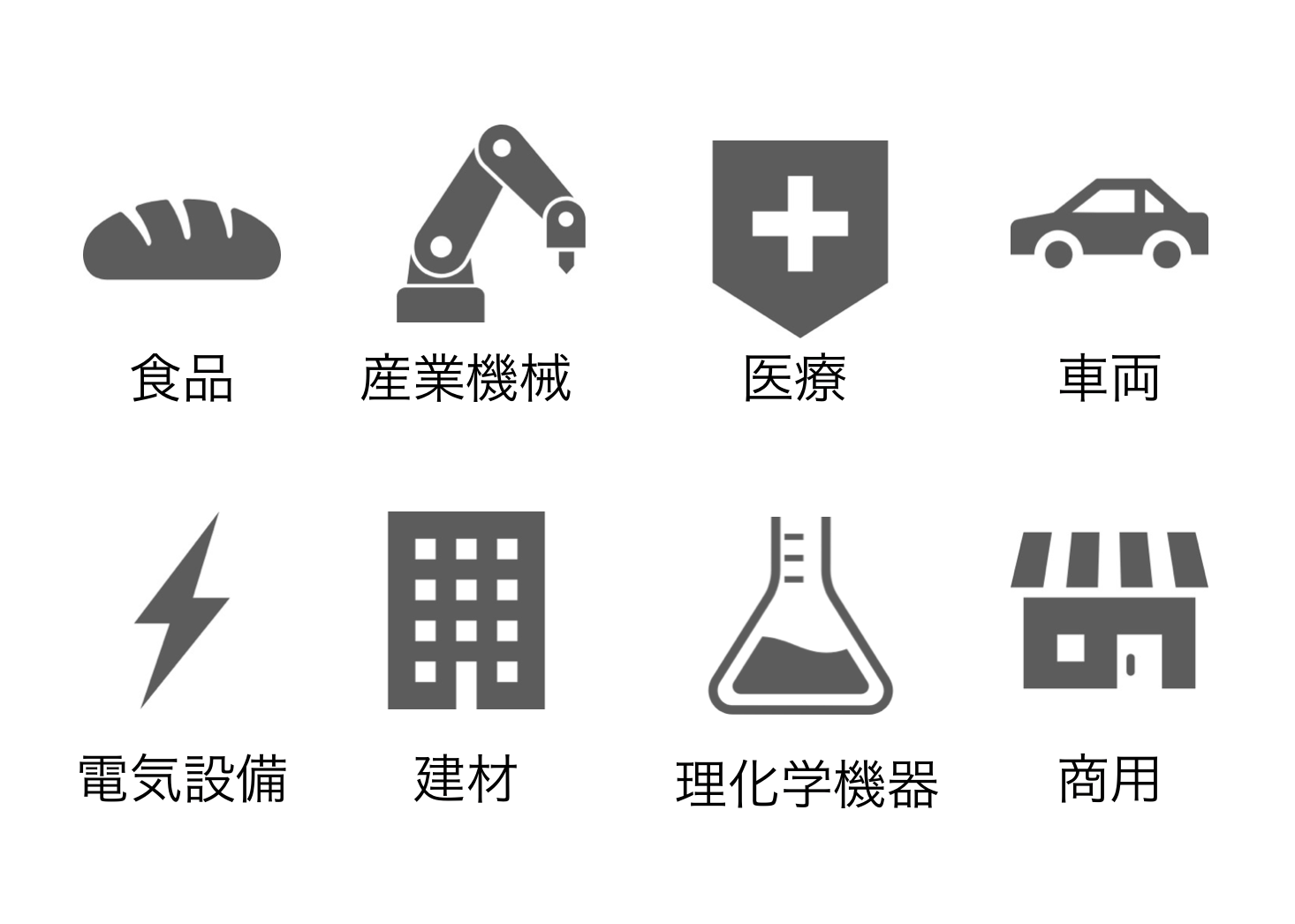 OA機器、自動車部品(内外装品)、ゲーム機、建築部材(室内用)、電気製品(エアコン、冷蔵庫)